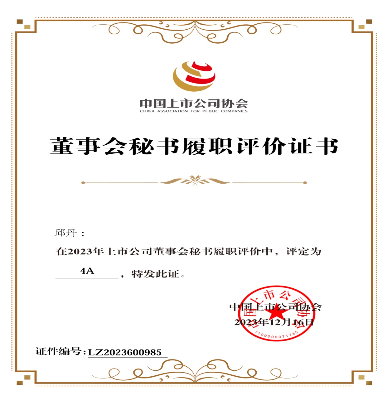 繼淮北礦業(yè)榮獲中國上市公司協(xié)會“2023年上市公司董事會優(yōu)秀實踐案例”后,近日中國上市公司協(xié)會“2023上市公司董事會秘書履職評價”“2023上市公司董辦最佳實踐創(chuàng)建活動”結果先后發(fā)布,淮北礦業(yè)集團黨委常委,淮北礦業(yè)副總經理、董事會秘書邱丹連續(xù)兩年榮獲董事會秘書履職4A評級,證券投資部首次榮獲董辦優(yōu)秀實踐案例。